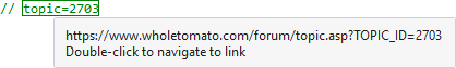 The Default plug-in tells Visual Assist to show a tooltip when hovering, and then launch a browser or shell command upon double-click. The hovering tooltip contains an expanded URL or shell command.