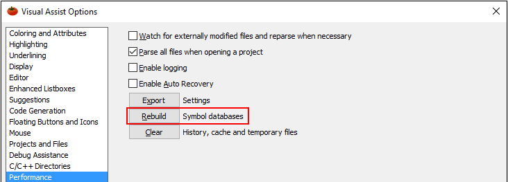 HKEY_CURRENT_USER \ Software \ Whole Tomato \ Visual Assist X \ <IDE spec> \
