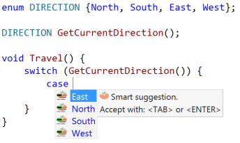 Smart Suggestions are highly context-aware code hints that speed development by suggesting text you're likely to type in the current context. With Smart Suggestions, C++ users enjoy autocompletion built into the IDE for C# users, and for C# users, Smart Suggestions become available in more scenarios.