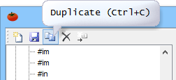 The first four buttons in the toolbar of the editor operate on the level of VA Snippet, and are operative only when focus is in the tree. The last button, Insert Reserved String, is operative only when focus is in the code field.